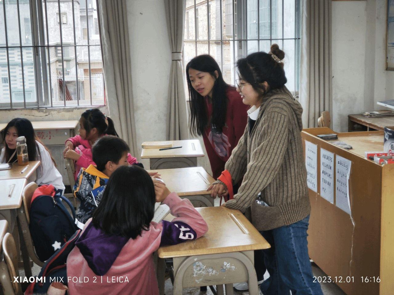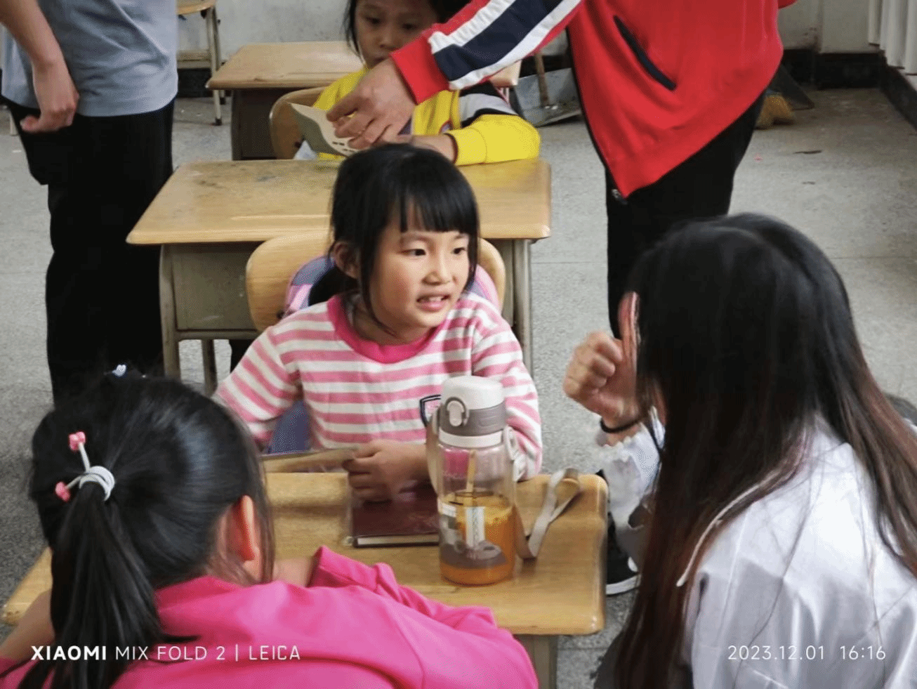 商学院学生第四党支部黄筱媛同志表示:今天第一次跟着书记和师兄师姐去小学调研!对调研有了个初步了解,还在书记和校长的交谈中感受到他们对学生的关爱和希望。在乾留小学认识了一群腼腆但可爱有礼貌的小朋友以及坚守岗位的老师。有一位老师让我印象最深刻,她十分热情地与我们介绍、夸赞学生,了解学生的性格特点,(她似乎了解每一位学生!)可见她对学生的关爱、对教育事业的认真负责。真的很敬佩这些老师们能在仅仅十多人的小学保持对教育事业的热爱。