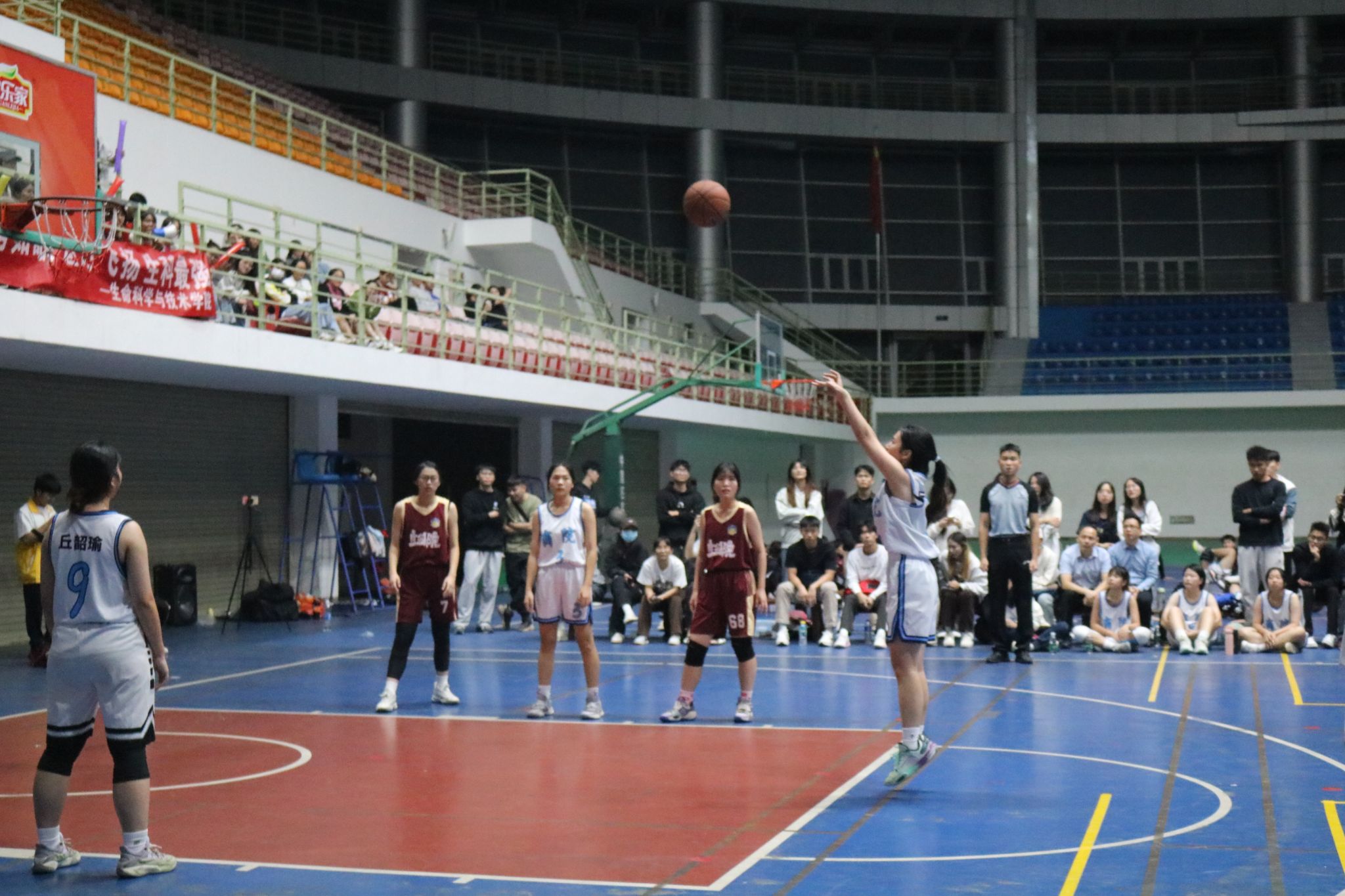 商学院女篮以出色成绩一路过关斩将,冲进决赛,向着冠军目标前进。现场观众热情似火,期待着这场冠军之战。随着一声哨响,比赛正式开始。接球、传球、跑位、内切、上篮,商学院通过彼此间默契的配合首先拿下比赛的第一次得分,鼓舞了场上的队员,也点燃了场边的观众。女篮队员们每一次进攻都快速有力,每一个篮板都努力拼抢,每一次防守都拼尽全力。上半场结束,双方战至16:16平。