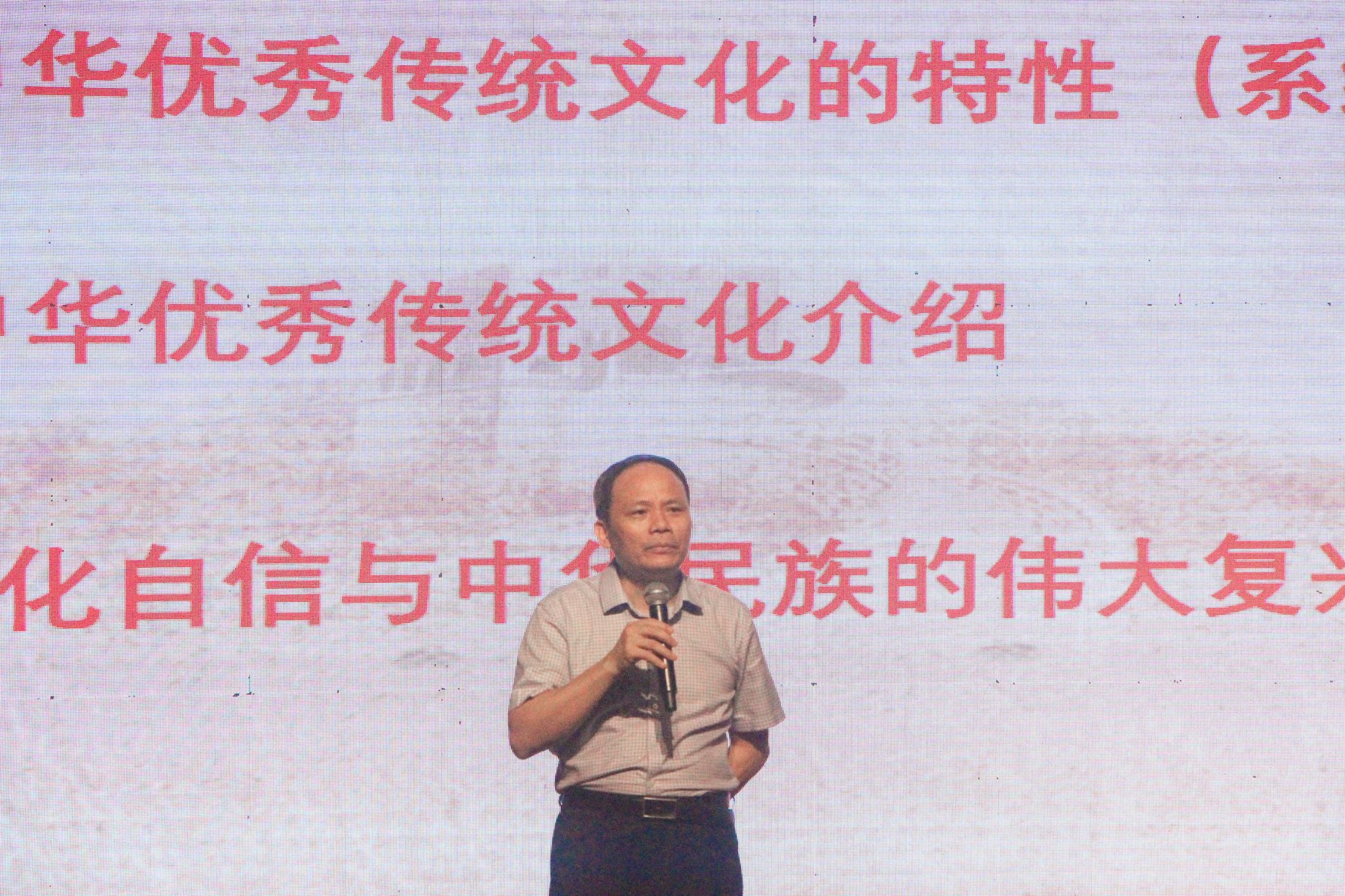 9月13日下午,商学院党委书记何等浩以“传承中华优秀传统文化,争当‘有理想、敢担当、能吃苦、肯奋斗’的新时代好青年”为主题,于音乐厅为商学院全体新生开讲思政第一课。