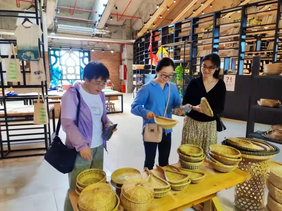 参观足荣村茂德公大观园工艺品展厅(刘海英摄)