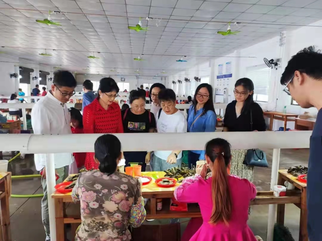 在流沙村,调研小组参观了湛江尊鼎珍珠有限公司珍珠文化展厅、珍珠加工厂及珍珠养殖基地。赵海燕教授对湛江尊鼎珍珠有限公司采用的“公司+基地+农户(贫困户)+管理+技术+工种”全面参股的创新模式给予了充分肯定。该公司致力于打造流沙珍珠孵化养殖加工一体化基地,不仅带动了该村贫困户和村民就业致富,也大大推动了南珠的标准化、规模化和产业化发展。