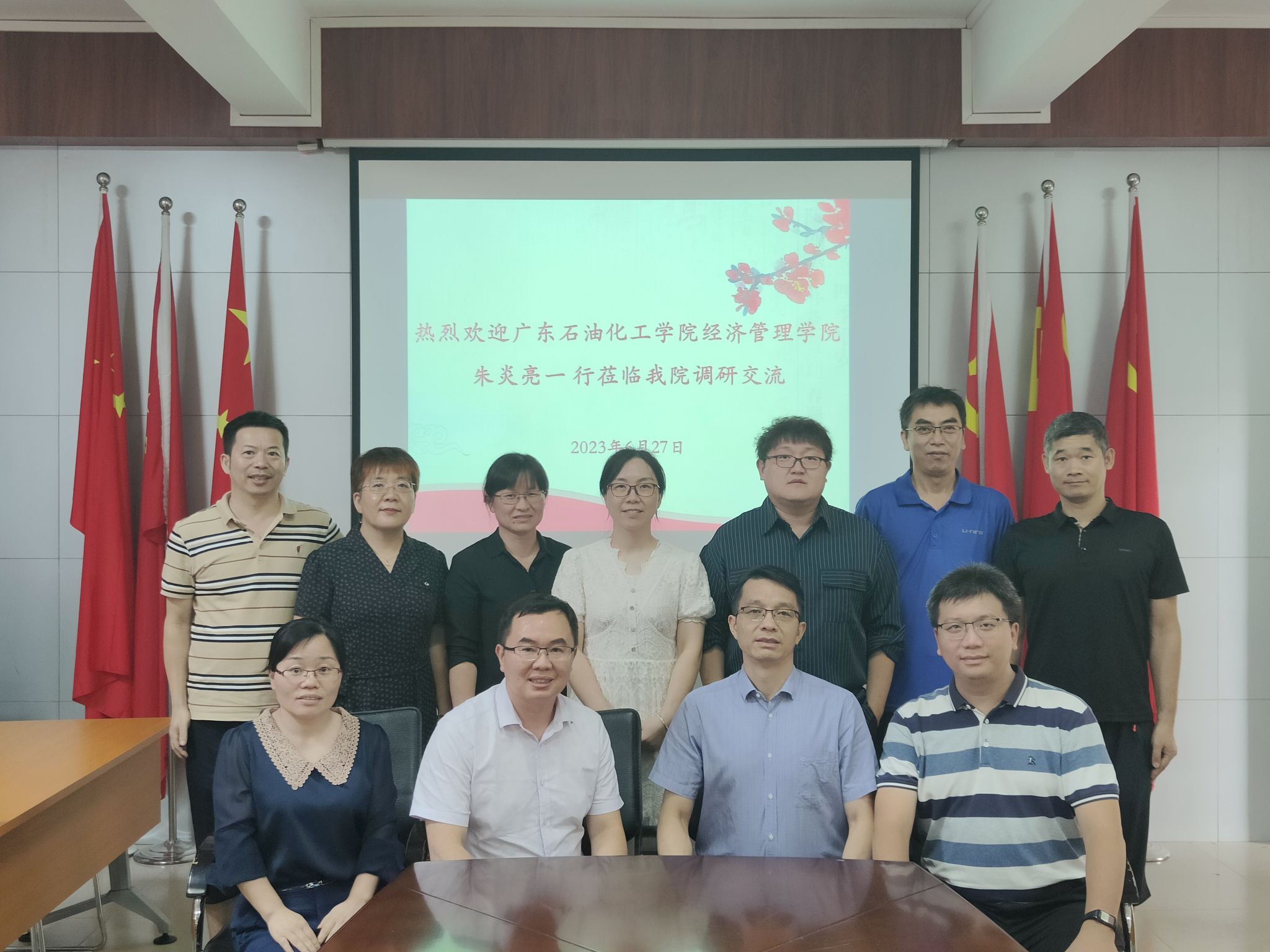 6月27日下午,广东石油化工学院经济管理学院朱炎亮副院长一行6人莅临岭南师范学院商学院开展调研交流。岭南师范学院商学院院长许抄军、党委副书记谢明亮、副院长陈臻以及双方系负责人、教师代表出席此次座谈会。会议于燕雷楼309会议室举行。