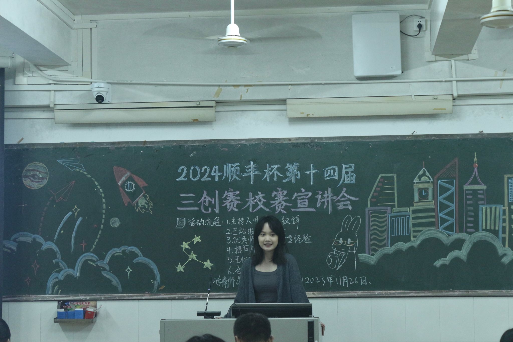 优秀师兄师姐分享经验环节。陈凌云师姐、吴宇瞳师姐、李梓民师兄依次上台进行经验分享。他们向同学们分享了自己在备赛和参赛体验中遇到的问题和解决问题的方法,发言简明生动,分享的宝贵经验令在座的同学受益匪浅。最后,他们真诚祝福同学们可以在此次“三创赛”中取得佳绩!