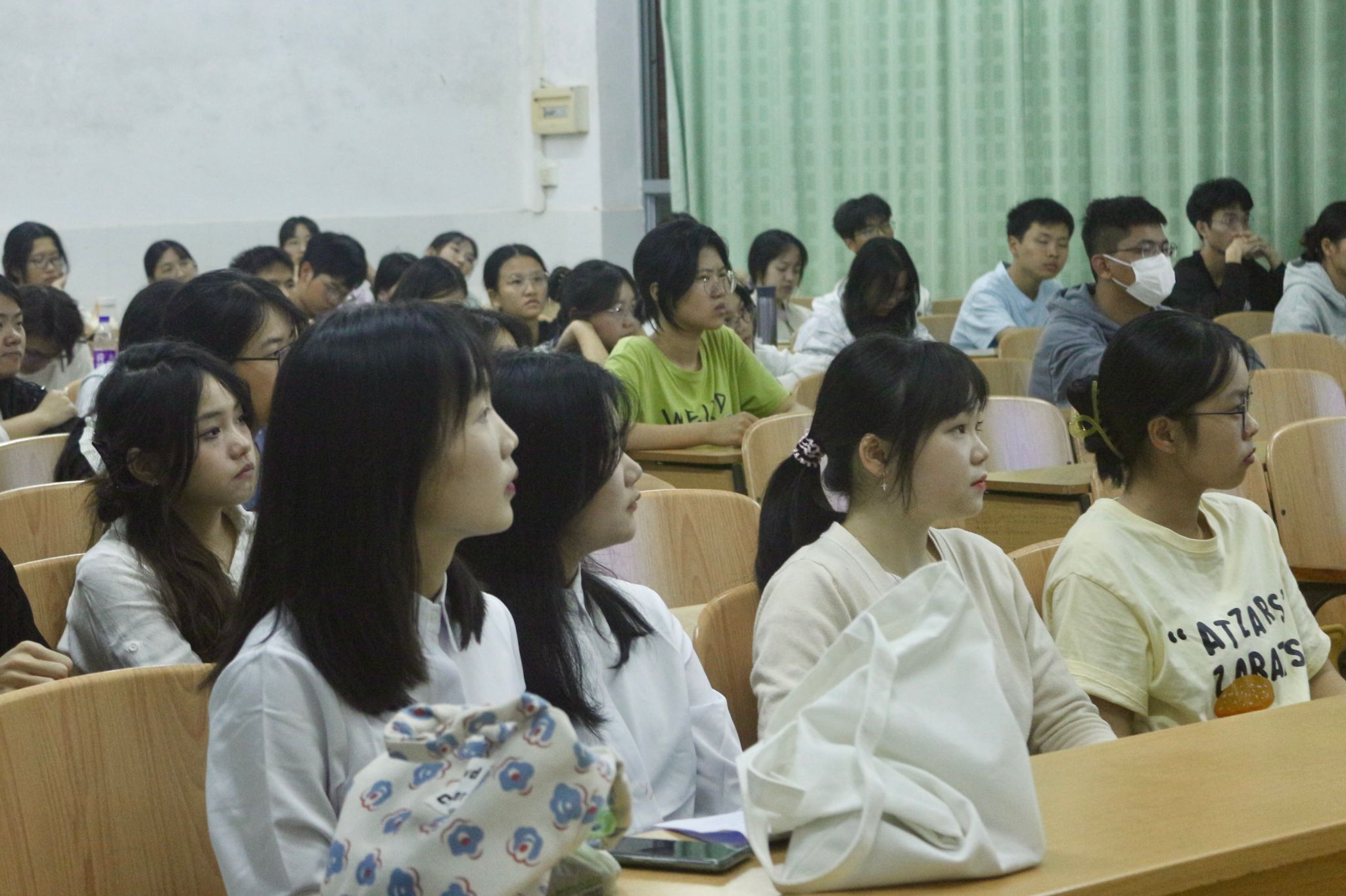 解答环节中,同学们踊跃举手提问,与台上三位师兄师姐进行互动,会场气氛活跃,表现出了同学们对比赛内容的渴求和探究精神。