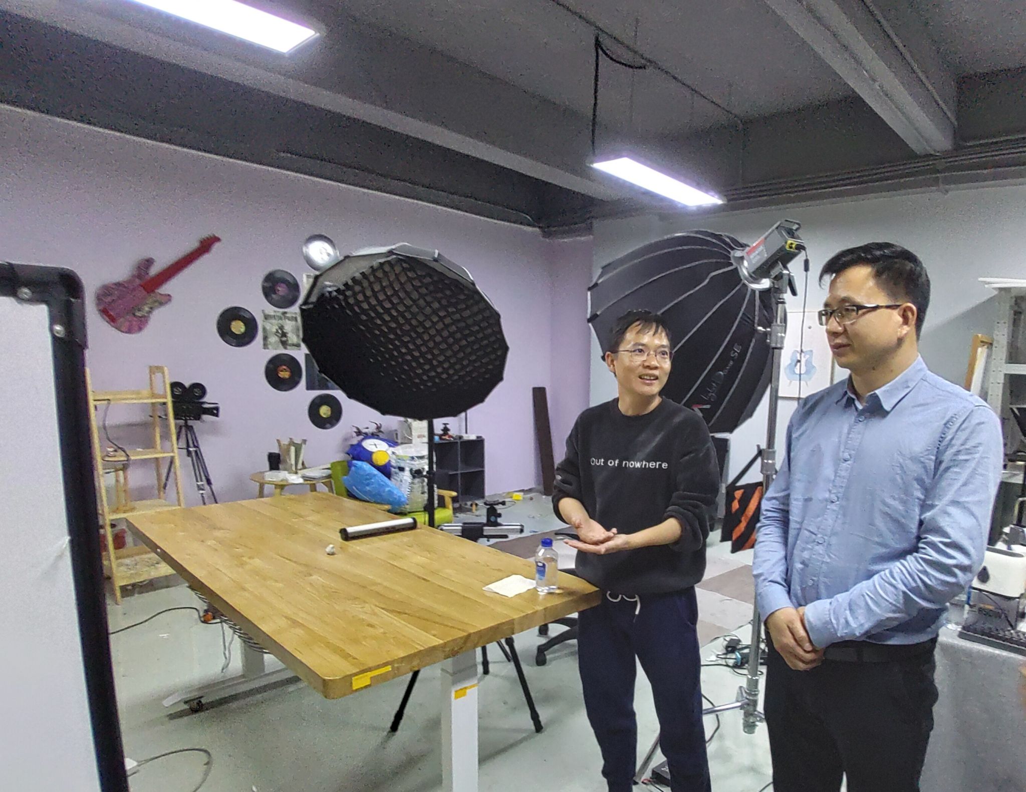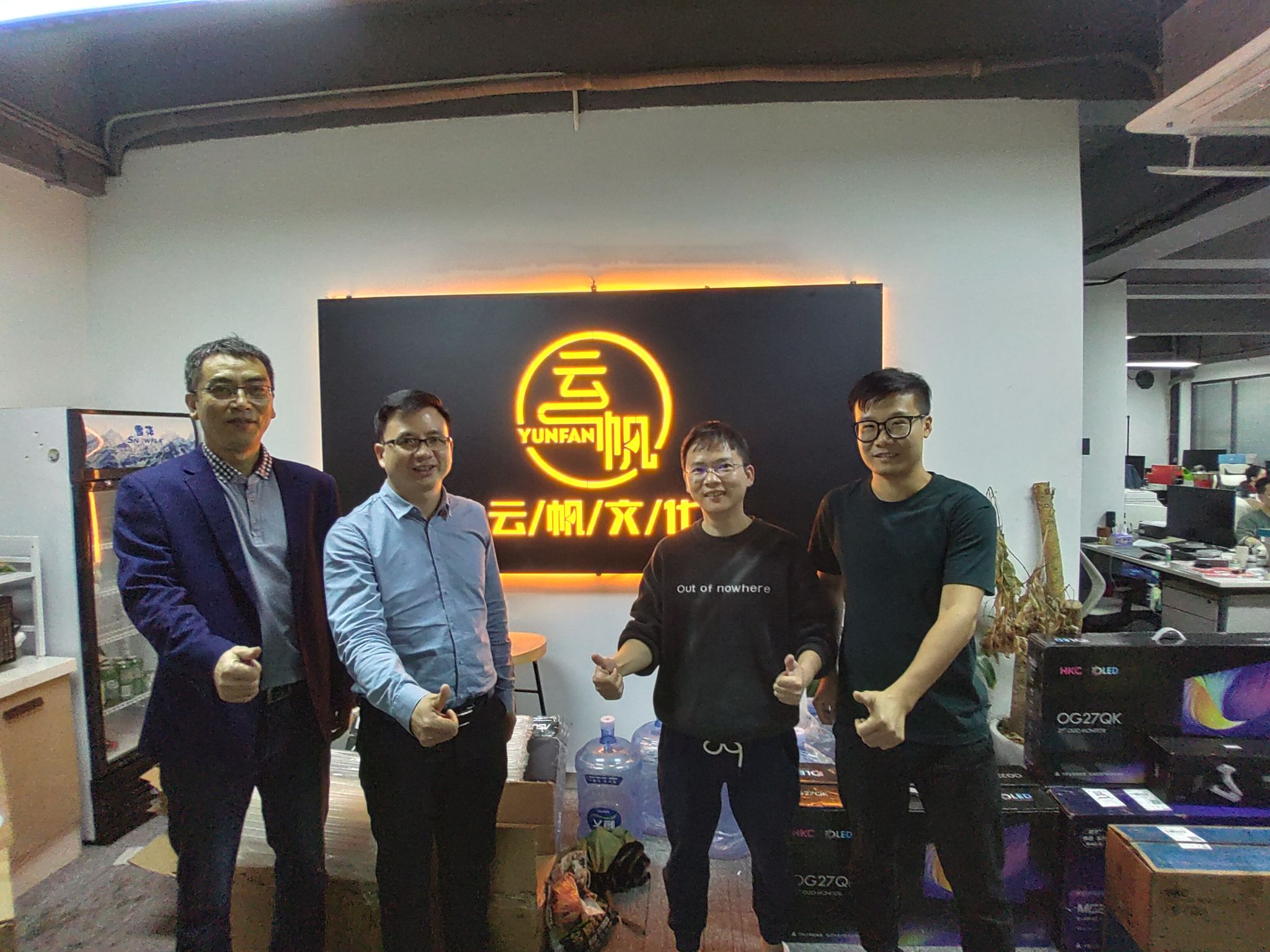 广州云帆文化传播有限公司总经理钟志结、内容部门经理张毅初热情接待了谢明亮一行。张毅初是商学院2016届校友,他对母校领导、老师一行的到访表示热烈欢迎,并向老师们汇报毕业后的工作情况。