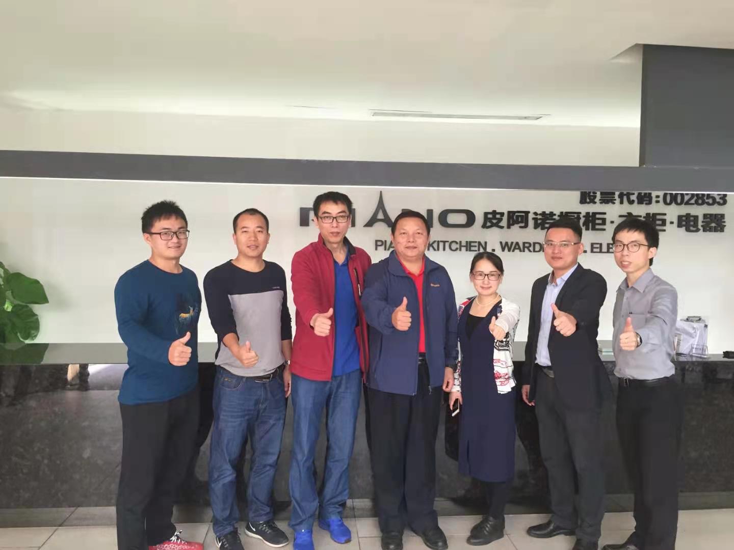 李海文一行探访校友温有华所在的中山市大信控股有限公司、校友蔡滨所在的广东皮阿诺科学艺术家居有限公司以及校友余婷慧所在的东莞市立达企业服务有限公司,受到优秀校友们的热情接待。同时,领导们纷纷对校友在企业中所取得的成绩给予充分肯定,并向校友们表达了真诚的问候和关怀,诚邀校友们常回学校看看,回学院聊聊,加强母校与校友间的交流与合作。