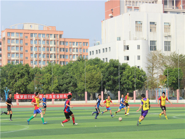 第二场,由湛江校友联队对战商学院学生队。湛江联队的13号球员立刻开始了猛烈的进攻,以娴熟的技巧拿下了漂亮的一分。双方的球员们展现出各自变换的脚法、默契的配合、有条理的队形部署,很快使比赛进入白热化阶段。比分最终锁定在2:2。