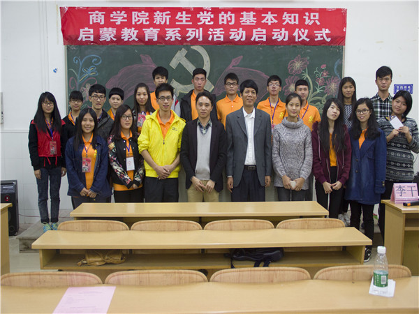 为加强对新生的党建启蒙教育、有效地做好学生党团组织建设工作,11月30日晚,商学院于燕雷楼811室举行党的基本知识启蒙教育系列活动启动仪式。出席会议的有商学院党委李干书记、辅导员董芬老师、杨文杰老师以及全体参加党的基本知识启蒙教育系列活动的新生同学们。会议由商学院党建辅导员陈幕飞老师主持。