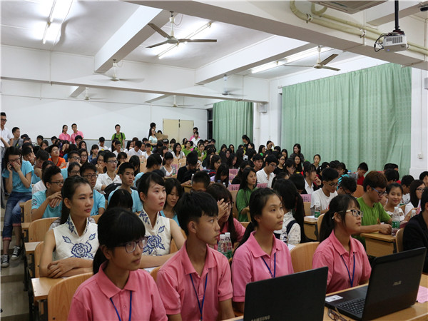 比赛伊始,各参赛班级代表集体登台亮相,依次带领各自班级齐唱班歌,高亢嘹亮的歌声点燃了现场的气氛。