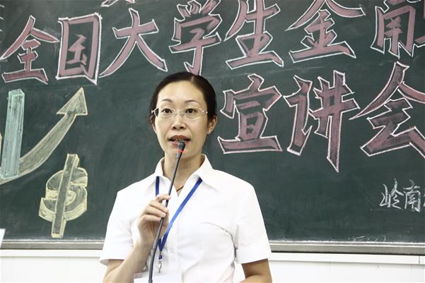 会议伊始,邱美英副总经理从中国银河证券公司的国资背景、股东以及公司上市时间等方面出发,肯定了中国银河证券公司对湛江市市场繁荣所做出的贡献。其次,她还就中国银河证券公司的有关优势和其在湛江地区营业部营销人才招聘和经理岗位实习生招聘两方面的校园人才储备招聘计划做了相关介绍,并对招聘人数和工作内容作简要说明。最后,她希望银河证券公司可以帮助大学生打开学习经济知识的大门,让大家的能力有所提高。