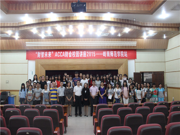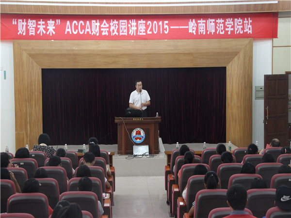 10月18号下午,由岭南师范学院商学院举办的“财智未来”acca财会校园讲座在我校图书馆学术报告厅顺利举行。商学院夏青副院长,会计系主任刘海英副教授,会计系副主任李妍老师,辅导员陈幕飞老师以及acca华南地区教育拓展经理蔡晓凡,楷博财经教育经理郑永彬和财务会计专业的学生出席了本次讲座。