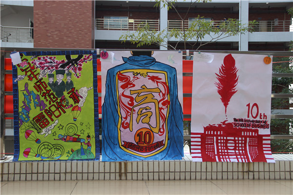 经过六个小时的努力,一幅幅风格各异的作品就呈现在我们面前。有引人注目的浓墨重彩图画、令人身心舒畅的小清新图画、震撼人心的强烈色彩对比画、也有古色古香的古建筑风格画。同学们的选材都是围绕着《百年师范·雷阳传承》和《商院十年路·学子终身情》这两个主题来选择的,选手们的作品都体现了他们对商学院以及岭师的深厚感情。