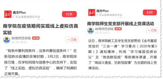 实验室党员同志为了保证师生们在3月2日开始,按课程表进行线上教学与学习,排除万难,在学校网络与信息中心的支持下,实现了“线上实验、虚拟仿真实验”并受到了广东新闻南方头条的报道,确保了网课的正常开展。