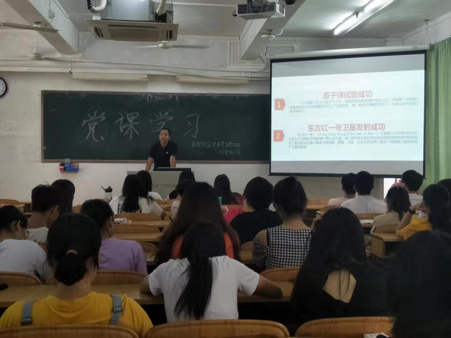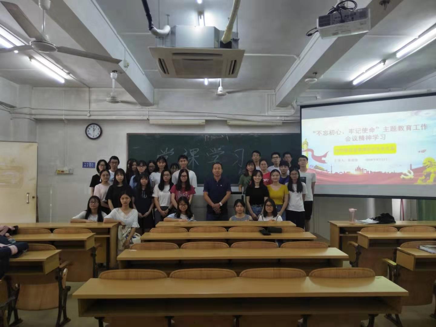2019年10月17日,商学院信管系学生党支部在第四教学楼C栋301召开“不忘初心、牢记使命”主题教育工作会议精神的党课学习,本次党课由支部书记梁康建主讲。