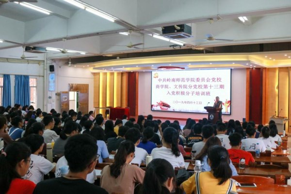 4月13、14日,中共岭南师范学院委员会党校商学院、文学与传媒学院分党校于弘雷楼211室举行第十三期入党积极分子培训班。本次培训班开班仪式由文学与传媒学院党委书记柯春明主讲,本次培训班的邀请了校党委常委、组织部部长邓逢光、马克思主义党总支书记谢应明、继续教育学院院长王栋和马克思主义学院副院长童小彪等专家进行授课。本次培训班针对对象为商学院和文学与传媒学院分党校的学生入党积极分子,旨在落实全面从严治党,抓好入党积极分子队伍建设,切实提高入党积极分子综合素质,强化其基本素养,做好“关口前移、提前介入”的工作,及时把新发现的先进分子吸收到队伍中来,着力培养中国共产党的接班人。