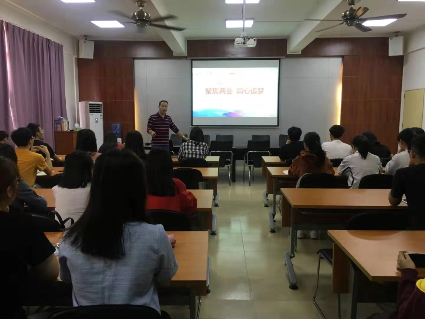 2019年3月25日,商学院信息管理系学生党支部开展了以“聚焦两会,同心追梦”为主题的党课。本次党课由支部书记梁