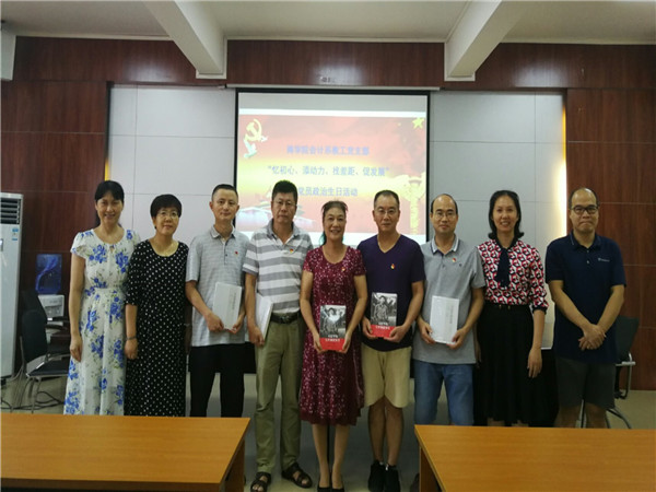 学院党委李爱群书记领誓,带领党员,面对党旗,重温入党誓词,在思想上再次经受一次“洗礼”,回忆入党初心,始终保持共产党员的政治本色。过政治生日的党员都收到了一份特别的政治生日礼物——《习近平的7年知青岁月》和《习近平讲故事》,党员们亲切感受到党组织的关怀和温暖,时刻牢记着党员身份,切实增强党员的荣誉感、责任感、使命感。