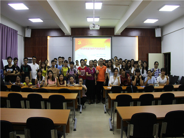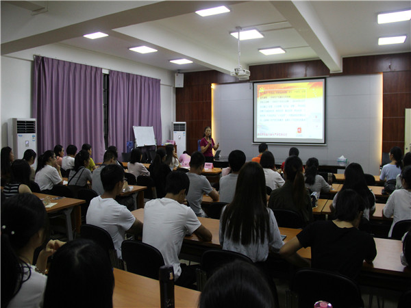 9月22日,为深入学习贯彻习近平总书记系列重要讲话精神和治国理政新理念新思想新战略,推进“两学一做”学习教育,加强学生党员和入党积极分子理论学习,以良好的精神面貌迎接党的十九大胜利召开,商学院党委李爱群书记在商学院会议室为学生党员及入党积极分子讲授了“切实担负起全面从严治党责任”的专题党课。商学院辅导员陈幕飞老师、钟升老师、钟灵老师也参加了本次专题党课活动。