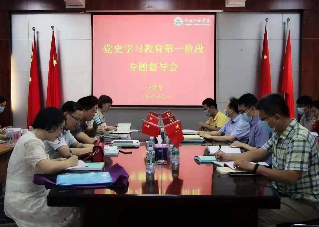 6月10日上午,商学院党史学习教育第一阶段专题督导会于燕雷楼3楼会议室举行。校党史学习教育第三督导组组长、校党委常委、宣传部部长刘坤章一行、商学院领导班子、各党支部书记和教师代表参与本次会议。