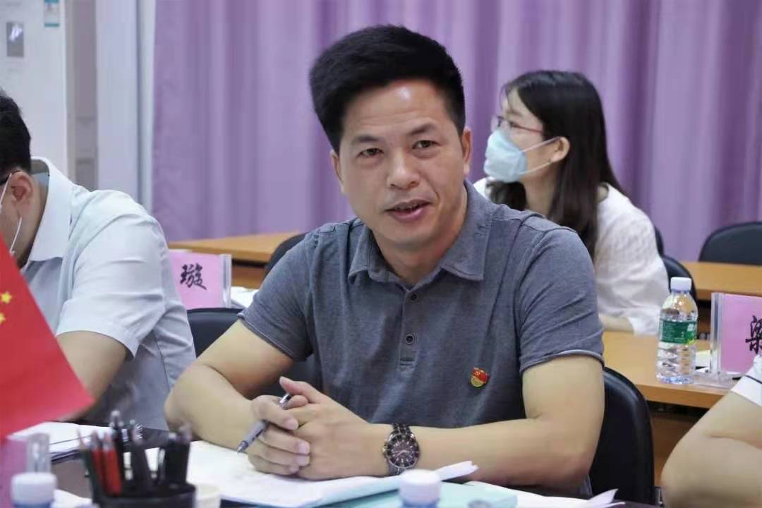 商学院党委书记何等浩对刘坤章一行的到来表示热烈欢迎,并以“传承红色基因,落实立德树人根本任务”为主题向督导组汇报学院党史学习教育情况。何等浩从学院党委层面及基层党组织层面介绍了商学院党史学习教育的工作特色及亮点,包括坚持“第一议题”制度,开展“3个1”掌上学习党史活动、邀请兰艳泽校长为商学院学生讲党课等。他从“五个到位”、“七个有力”、“四个强化”及“四个对接”入手介绍了学院党史学习教育的相关成效,包括成立《湛江市科技发展“十四五”规划》编写团队、助力新农村建设等。何等浩表示,商学院党委将按照督导组的反馈意见抓好整改落实工作,推动党史教育走深走实。