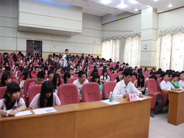 湛师新闻网13日讯 (记者:黄恺君 张汉芬 蔡晓萍 摄影:黄燕 叶静 发布:伍圣伟)昨日,商学院分党校第一期新党员培训班在图书馆的学术报告厅开班。