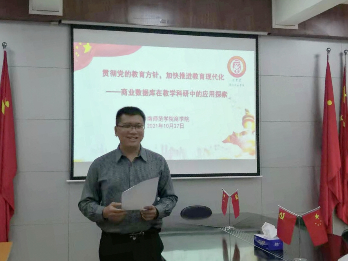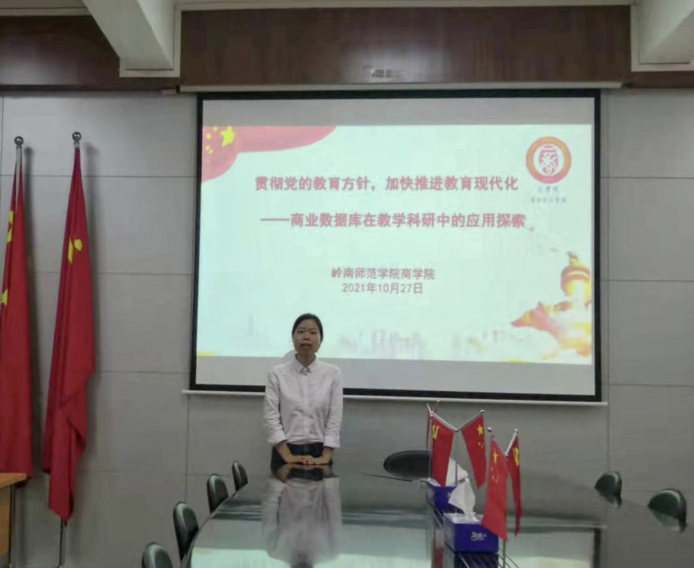 10月27日下午,岭南师范学院商学院学术骨干在学院会议室举行了一场“新商科”数据库建设与应用研讨会。会议邀请了国内领先的锐思数据科技有限公司华南区域负责人高小玲为参会老师讲解了大型商业数据库的建设历程以及对经济社会发展的影响。与会老师也结合自己的学科需求纷纷提出了新数据库在教学科研工作中的应用思路。本次研讨会启发了商学院学术骨干的教学科研创意,助力商学院在国家大力发展数字经济的背景下推进“新商科”建设的综合成效。与会人员包括商学院徐延利教授、韩凤晶教授在内的多位骨干教师共20余人。本次活动由商学院副院长陈臻主持。