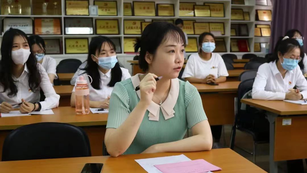 预备党员汇报个人情况。九位预备党员分别从学习情况、干部经历、比赛经历、志愿服务情况以及入党动机五个方面进行汇报。预备党员们表示,中国共产党是一个优秀的党组织,全党“上下一盘棋”的团结精神以及党全心全意为人民服务的实际行动让她们在深感自豪的同时,也决心向党组织靠拢,学习党的先进思想,为国家的发展贡献自己的力量。