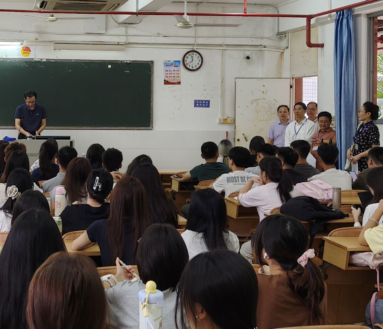 开学第一课,学校党委副书记林晓敏带领学生处、教务处等部门领导亲临商学院,深入课堂一线详细了解开学第一课教学组织、学生出勤及听课状态,并对学院学风建设工作提出指导意见。商学院党政领导班子带领学工办全体辅导员及学生干部,分组走进各课堂,对学生出勤、课堂纪律与学习状态进行了全面细致的检查。从巡查结果来看,新学期教学秩序整体良好,师生精神饱满、互动积极,展现出崭新的面貌。