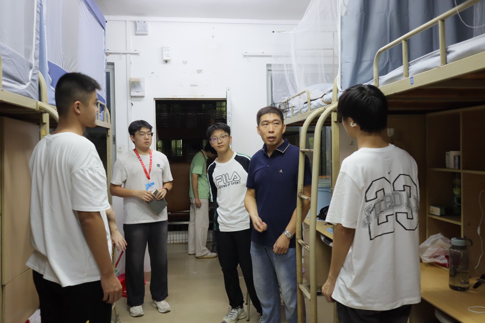 9月13日晚,为助力新生尽快融入大学生活,传递关怀与期许,商学院领导班子于尚雅苑、新民苑开展新生宿舍走访活动。