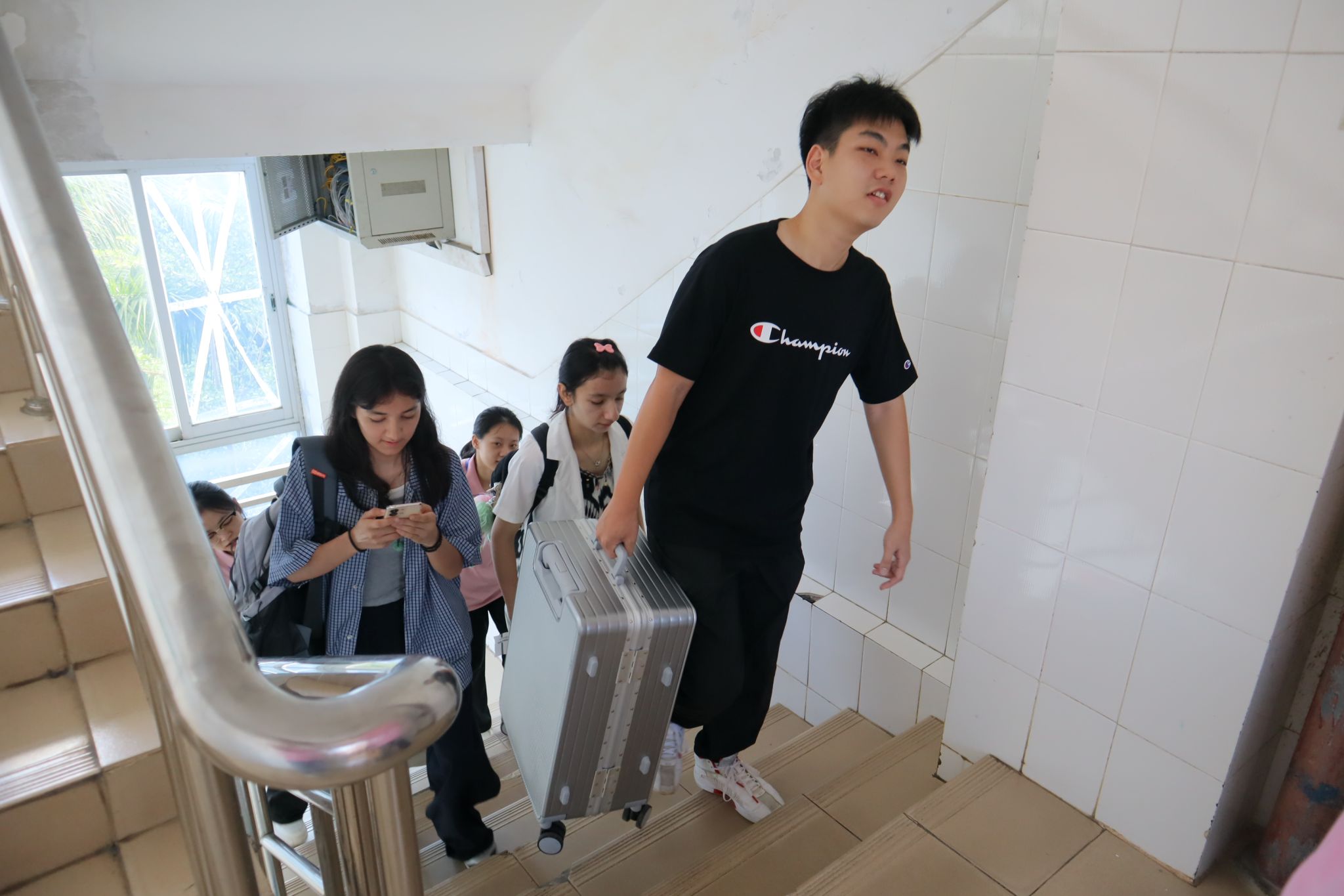 初来乍到的陌生感,会被校园里的温暖悄悄化解。报到现场,商学院志愿者团队成为最亮眼的风景线——见新生拎着行李,他们即刻上前接手,扛着行李箱穿梭在校园里;遇家长咨询,便细致讲解报到流程、宿舍设施与生活贴士。“我帮您送上去”“食堂在左转300米处”,简短话语伴着利落动作,将初来的局促化为安心,让校园满是人情暖意。