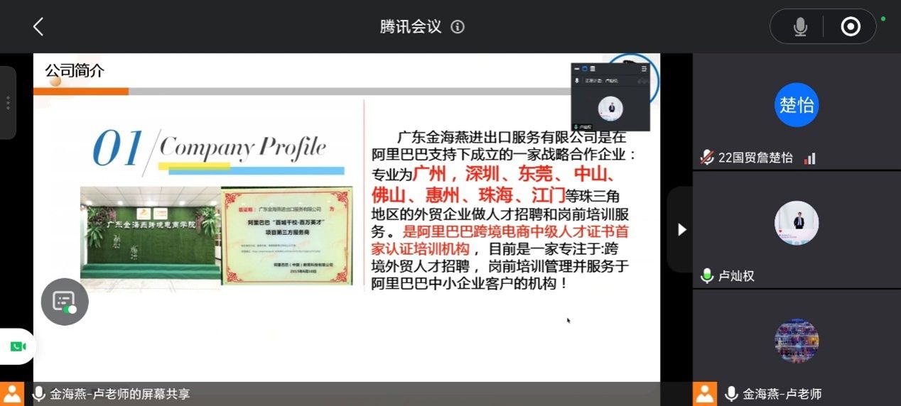 会上,金海燕公司代表卢灿权详细介绍了企业的发展历程和主要业务。公司成立于2013年,总部位于广东中山,十二年来一直专注于为珠三角地区(包括广州、深圳、东莞、佛山、惠州、珠海、江门、中山等8个城市)的外贸企业提供人才岗前培训和输送服务。作为阿里巴巴国际站在珠三角地区的合作单位,金海燕公司已与超过150所高校建立校企合作关系,每年成功输送上千名学生进入外贸行业就业。