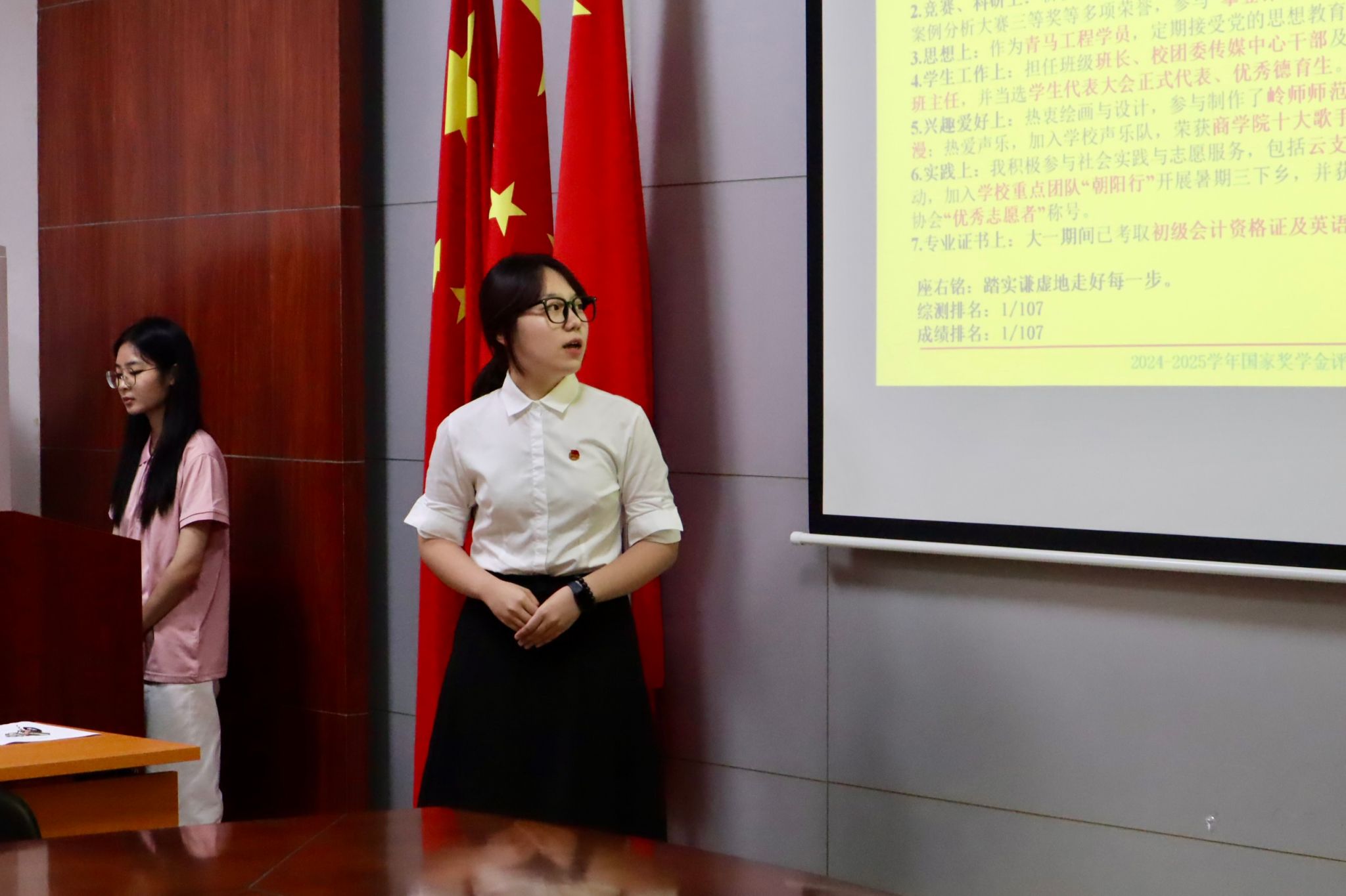 评选现场,20位学生候选人依次登台展示。他们着装得体、精神饱满,在有限的时间内以简洁有力的语言,从学业成绩、学科竞赛、志愿服务等多个方面,生动呈现了个人突出的成果与成长经历,展现出扎实的专业素养和全面的综合能力,充分彰显了我院学子积极进取、勇于争先的精神风貌。
