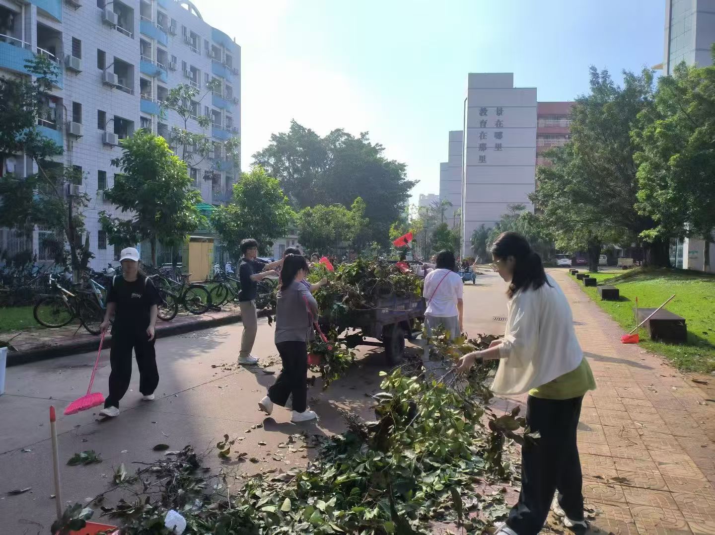 受今年台风“麦德姆”影响,学校校园里的道路断枝落叶堆积,不仅影响师生出行,更存在安全隐患。为尽快恢复校园及周边整洁秩序,商学院师生积极响应号召。于10月8日上午9时,在商学院领导班子带领下,组织30名志愿者开展专项清扫行动。