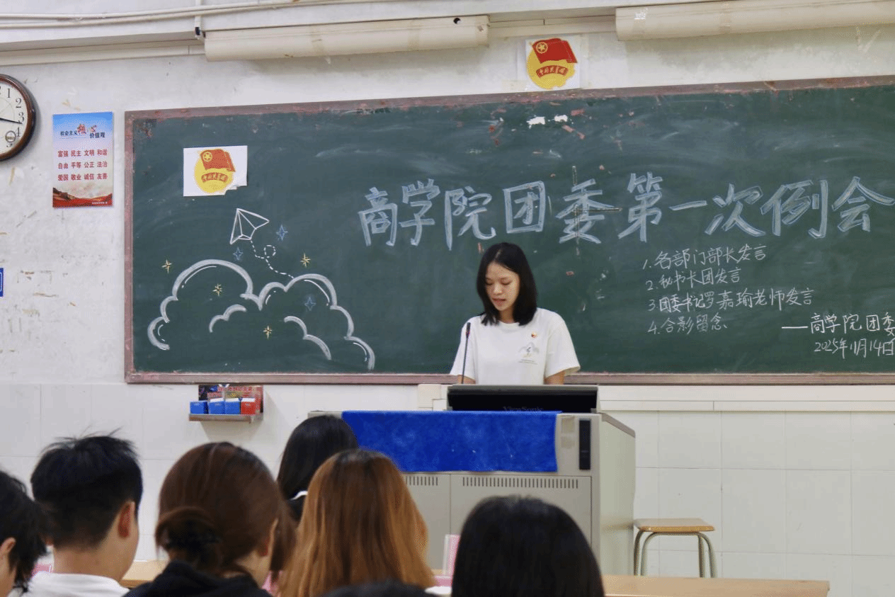 11月14日中午,商学院团委在燕雷楼C栋201室召开本学年第一次全体例会。商学院团委书记罗嘉瑜老师出席会议,团委秘书长团及各部门全体成员参加。