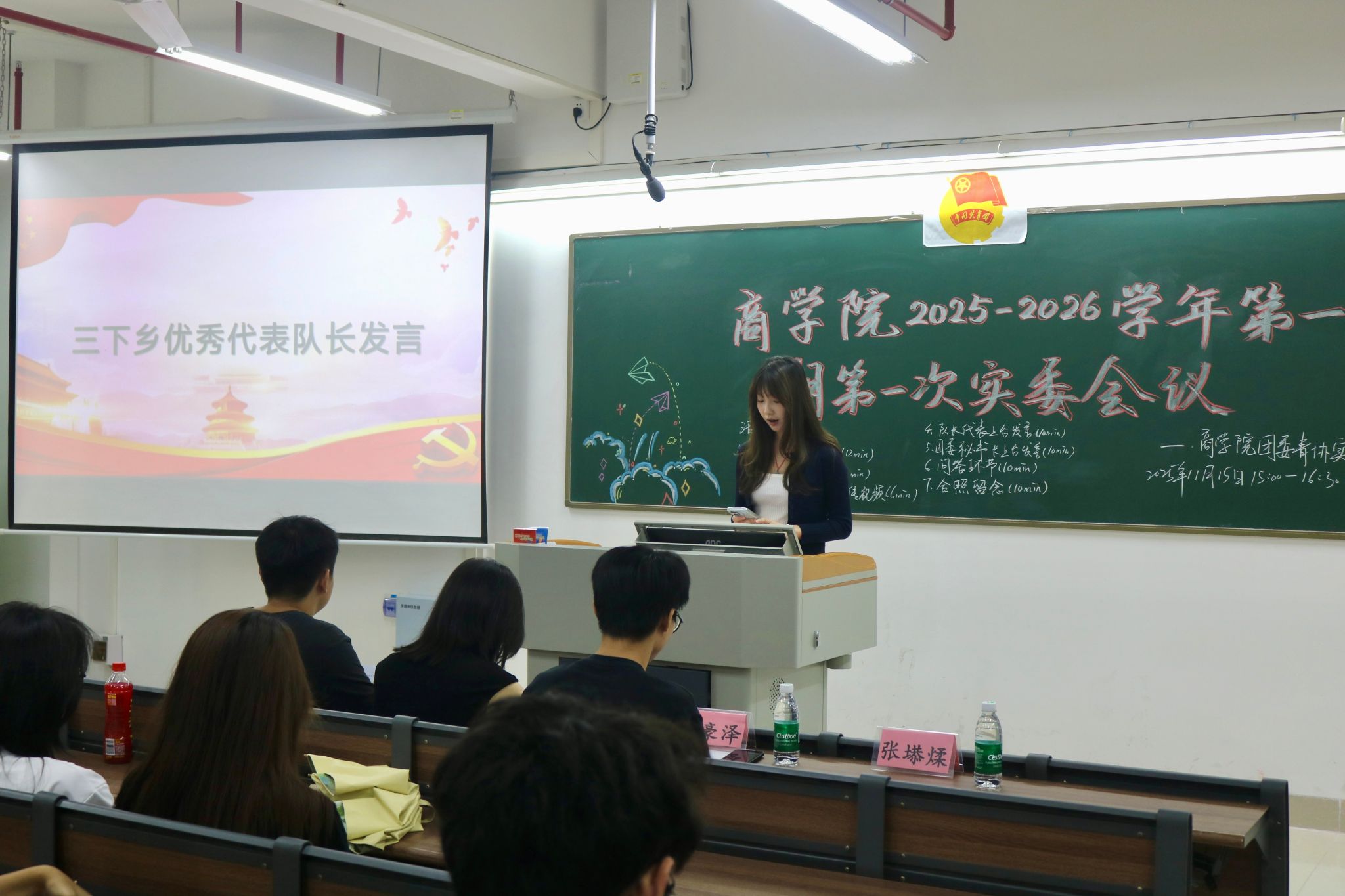 青协实践部部长杜飘首先对部门工作做出细致的讲解,并鼓励各班实践委员与青协实践部携手合作,支持志愿活动工作,让商学院的志愿实践工作做得更出彩。在观看“三下乡”实践视频环节,实践委员学习到如何通过多种渠道和创新形式对实践活动进行宣传,也进一步了解到“三下乡”活动的意义。