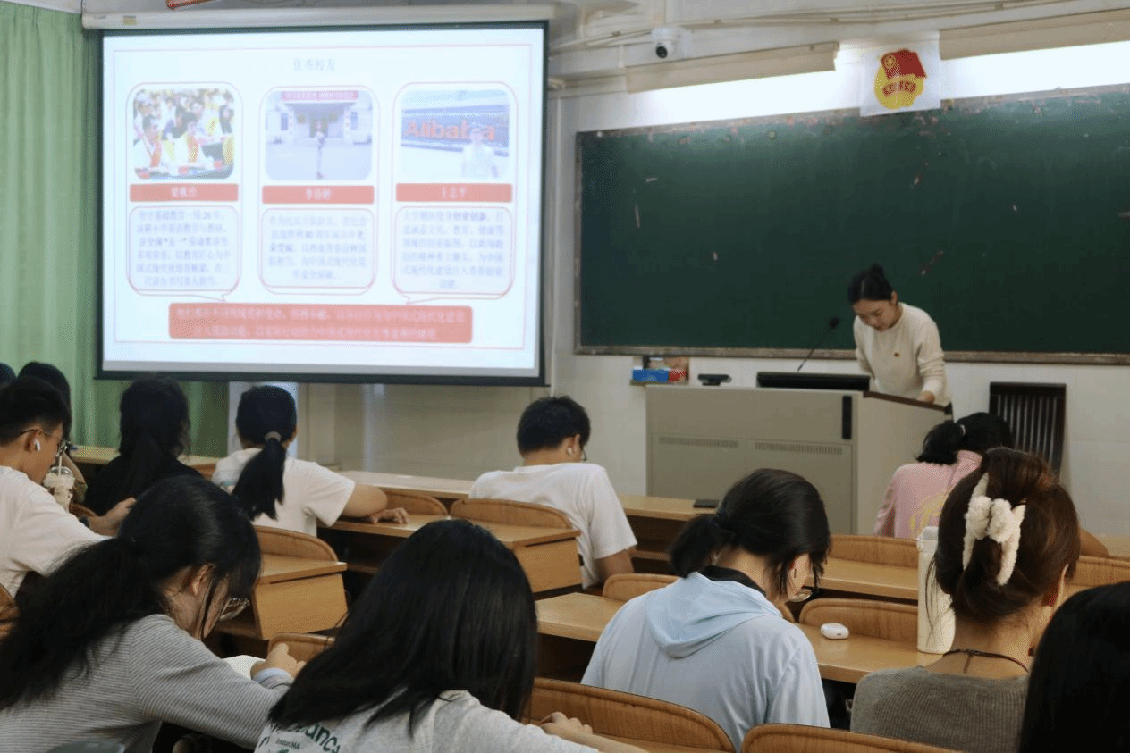 梁嘉丽则从“为什么‘我’要参与中国式现代化”出发,向同学们阐明了青年参与中国式现代化的原因是时代需求与青年能力的同频共振,随后通过商院青年在电商助农实践项目和大学生创新创业实践项目中的实践,阐释了青年在不同领域勇担使命、拼搏奉献、为中国式现代化建设注入了强劲动能。