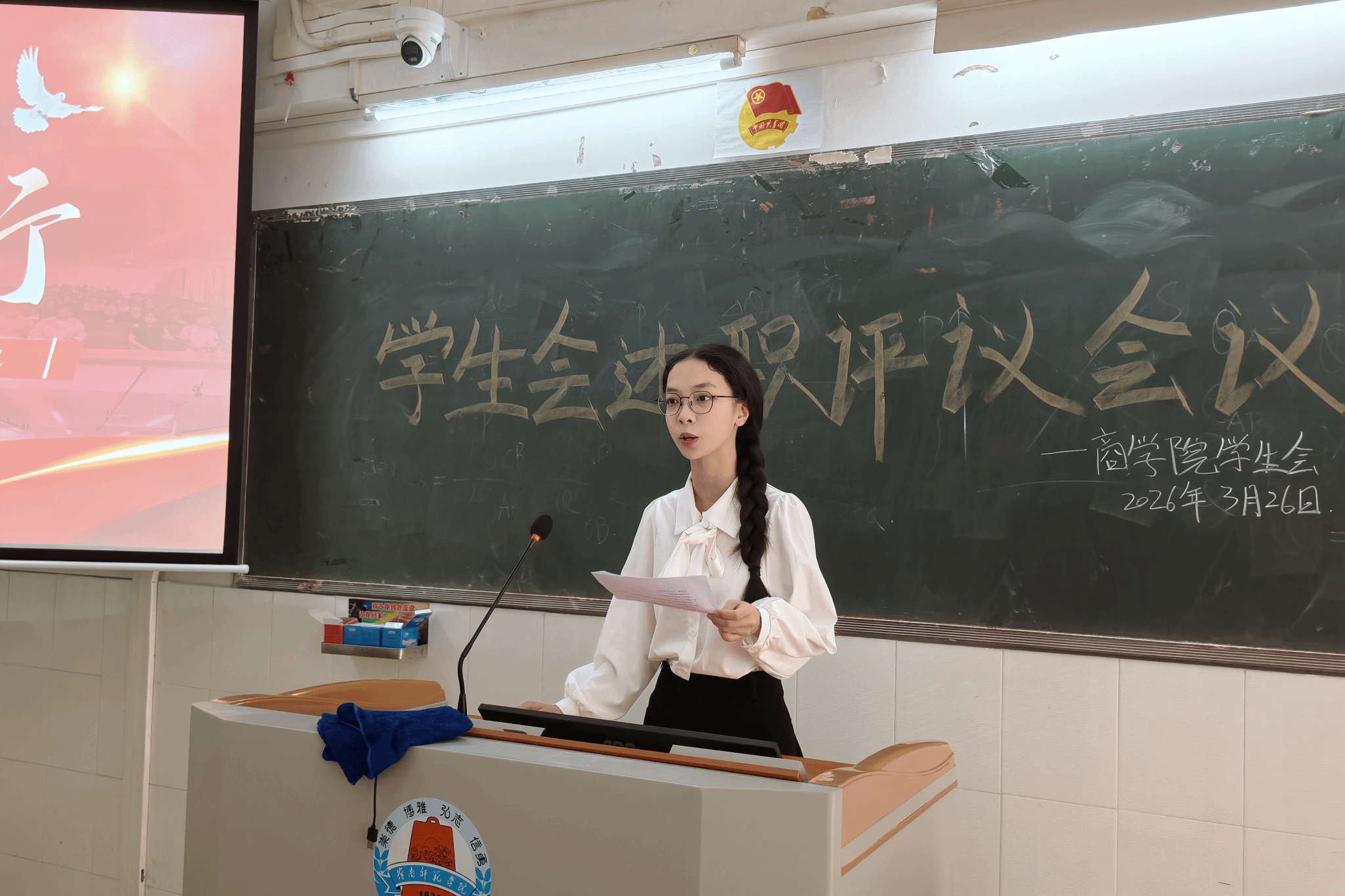 3月26日中午,商学院于燕雷楼C栋311室召开商学院学生会述职评议考核会议。商学院党委副书记谢明亮出席本次会议,校学生会主席团成员沈奕诺,团委副秘书长江旭学,以及商学院学生会主席团成员谭嘉浚、罗佳雯等全体工作人员共同参与此次会议。