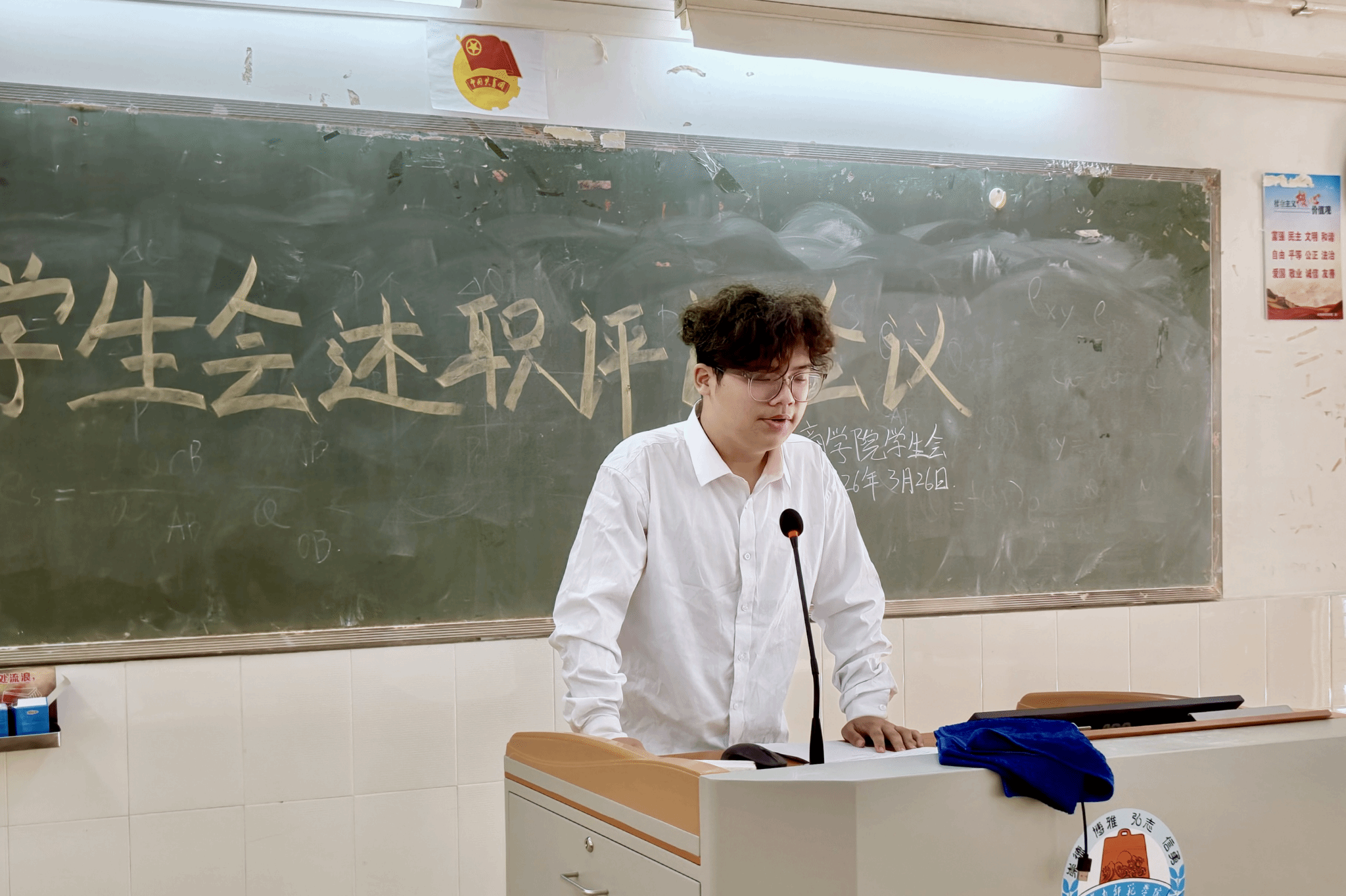 会议伊始,主持人介绍了会议的主旨与主要环节。谭嘉浚宣读了本次会议的评分细则,包括思想政治、学习情况、纪律作风、工作成就和工作设想五个部分。罗佳雯对学生会主席团的总体工作进行了汇报,展现了在思想政治、专业学习、社会实践及组织各类活动方面的优异表现。同时指出了目前还存在的不足及针对这些状况提出未来工作设想,主要包括梳理各部门工作职责,开展岗前培训,完善服务机制等,旨在更好地提高工作效能。