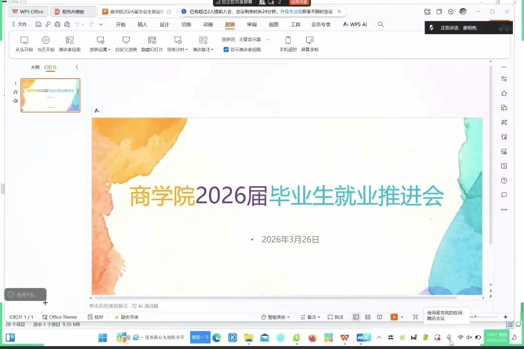 为深入贯彻落实高校毕业生就业工作的决策部署,扎实推进2026届毕业生就业工作,商学院于2026年3月26日晚通过腾讯会议平台线上召开2026届毕业生就业工作推进会。会议分四场进行,由商学院党委谢明亮副书记主讲。商学院2026届毕业班辅导员钟灵、2026届全体毕业生参加会议。