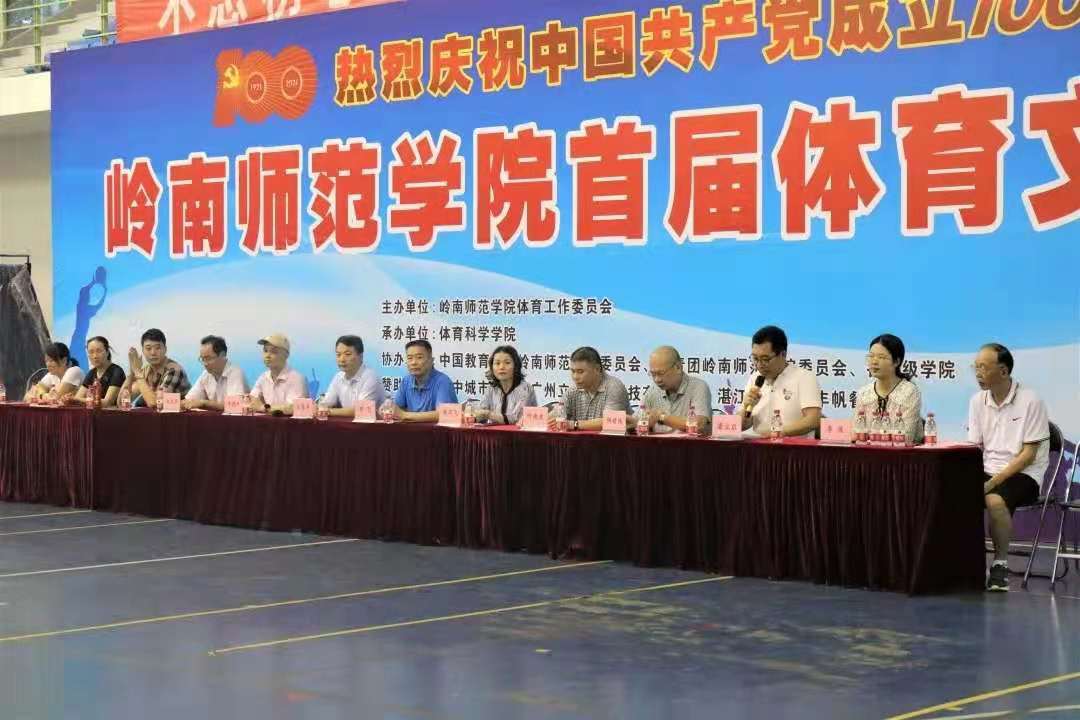 6月30日晚,岭南师范学院于雷阳区体育馆举行首届体育文化节闭幕式。商学院乒乓球、排球、足球和毽球队学生代表参加此次闭幕式。