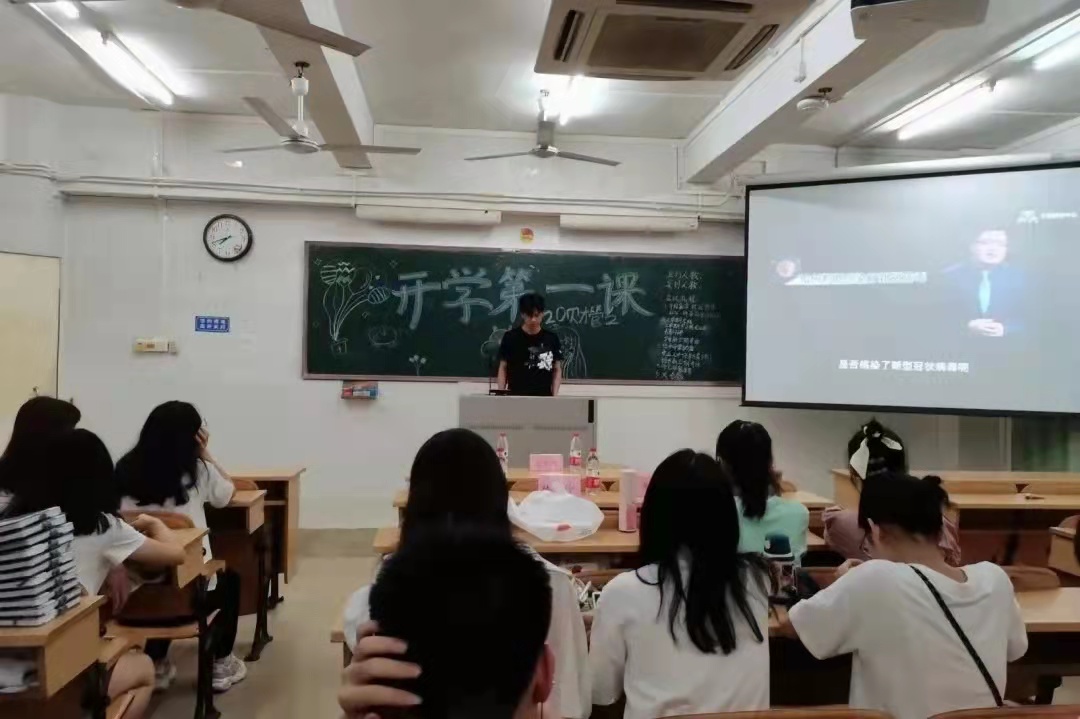 “开学第一课”主要围绕疫情防控、学生安全、纪律教育等主题进行。新冠疫情变化形势复杂,防控工作不可松解。商学院各班在“开学第一课”组织同学们观看了“如何预防新冠肺炎”的视频,扩大新冠肺炎相关知识的宣传深度及广度,进一步提高同学们防范新冠疫情的意识。同时,各班还向同学们普及了“诺儒”病毒、手足口病等秋冬季流行病毒的传播途径与防控方法,增强学生的个人卫生健康意识。20级年级辅导员周璇特别强调,凡是有发热情况,必须立即上报;凡是涉及疫情防控的数据统计工作,同学们必须高度配合;同时,同学们要随时关注疫情区域变化,不去中高风险地区及重点关注地区。