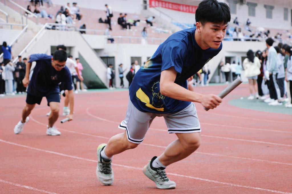赛场上,商学院的每位运动员都全力拼搏,以自己最大的努力向目标前进。在男子“4*100”接力赛的赛场上,20级工商管理1班的4名同学凭借默契的配合完美地传递了接力棒,取得了第一名的成绩。