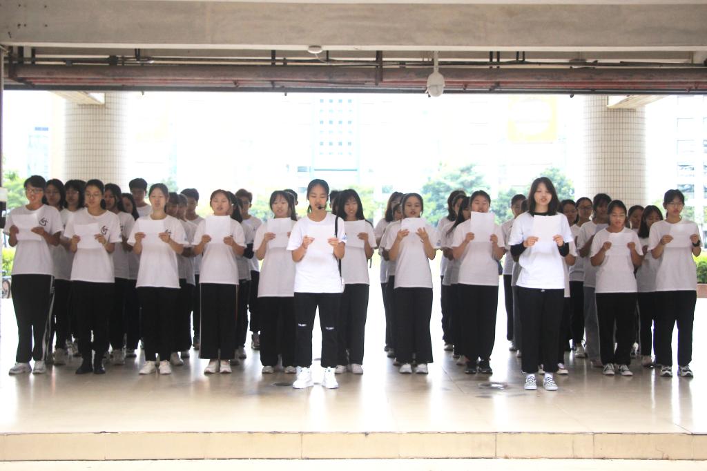 本次闭幕式以朗诵比赛的形式开展。各新生班级在比赛中尽展风采,朗诵主题涉及多个领域,朗诵形式别出心裁。朗诵内容有歌颂伟大祖国的《我的祖国》;有展现青春活力、时代担当的《青春之火,时代之光》;有勉励学生学会学习、学会钻研的《劝学》;有引导学生积极进取,不懈努力的《致奋斗》;还有体现中国青少年蓬勃朝气的《少年中国说》。同学们慷慨激昂的朗诵,是晨读活动最亮眼的风景线,也展示了同学们领略历代贤者宏博哲思,争做新时代弄潮儿的决心。