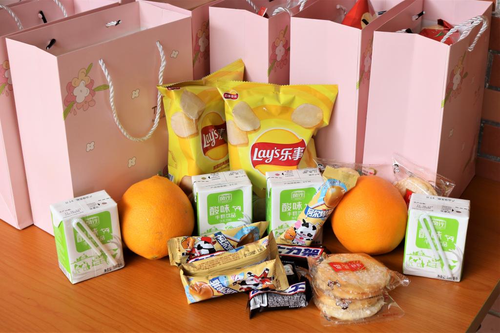 在活动的最后,领导和老师们还亲自给每位学生们派发了考研“加油包”,里面装着寓意“牛气冲天”的牛奶、“巧克难题”的巧克力、代表“榜上有名”的棒棒糖、“心想事成”的橙子以及待考研成功后共享“乐事”的薯片。