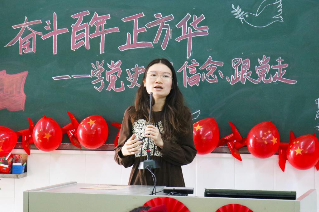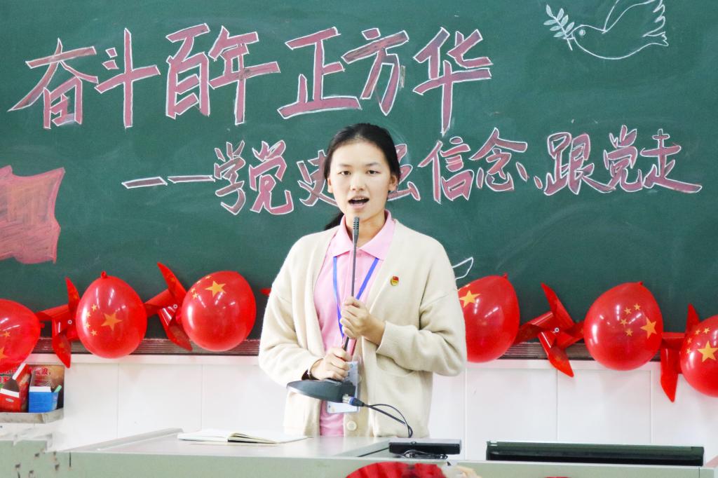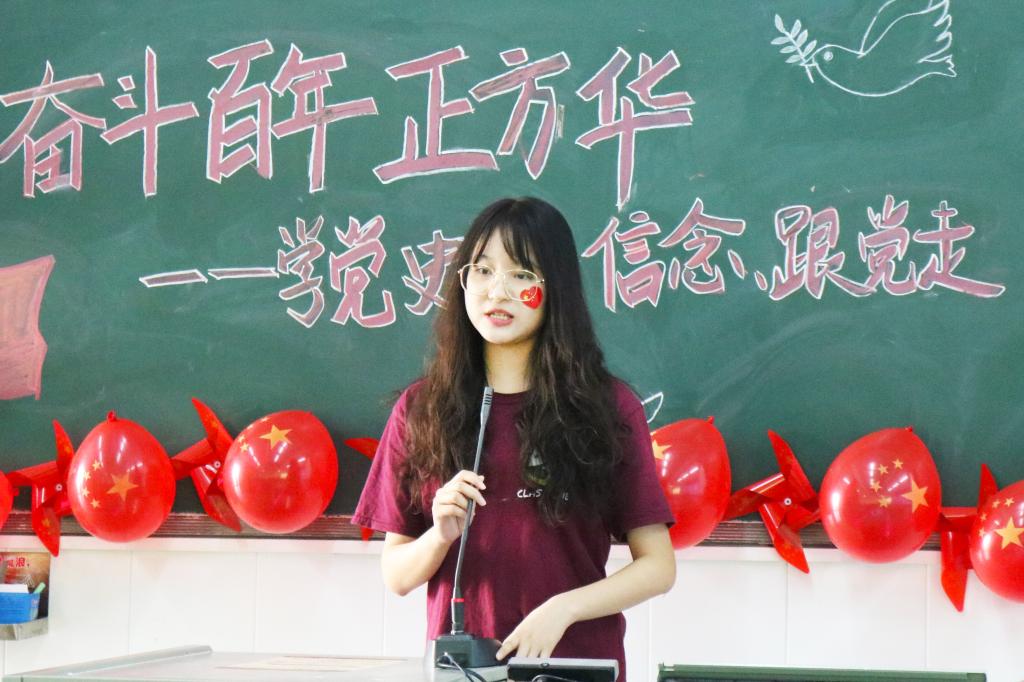 20国贸1班团支书常思乐做支部党的理论知识学习教育情况总结。她表示,支部积极响应国家号召,以“线上+线上”的形式开展了主题团日活动、优秀党员及优秀预备党员经验交流会活动及志愿服务活动等,较好地提升了支部团员的思想政治觉悟。