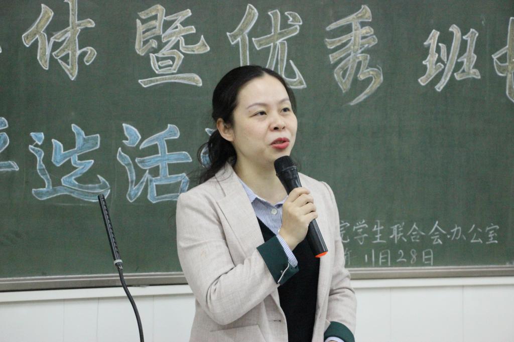 李春霞在活动总结中表示,“先进班集体”的着重点在于“先进”和“集体”上。其中,“先进”体现在班级的优势和特色上,“集体”体现在各班成员的凝聚力上,各班在班级的建设过程中要发挥专业特点和成员优势,且应注重培养班级的凝聚力和向心力。