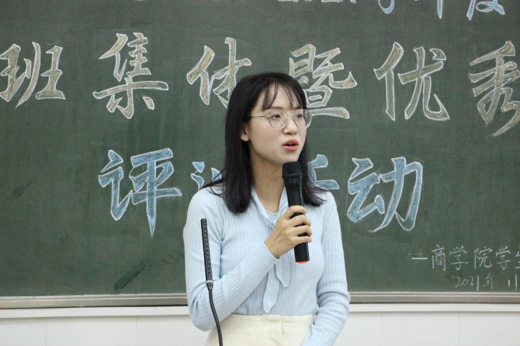 11月28日晚,商学院2020—2021学年度“先进班集体暨优秀班长”评选活动决赛于燕雷楼812室举行。商学院党委副书记李春霞以及辅导员谭诗蔚老师出席此次活动。