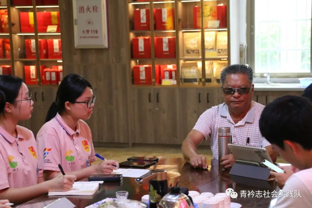 实践队调研组成员根据乡村振兴的政策和绿美广东生态建设目标向茶园创始人提出茶业如何发展和为当地带来经济效益的内容讲解的诉求,并且对茶业名字由来和什么是“有机茶”进行提问。