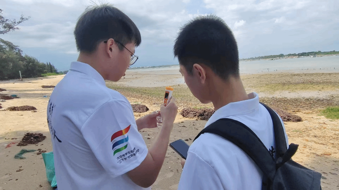 队员在检测海水(“筑梦岭南”社会实践队摄)