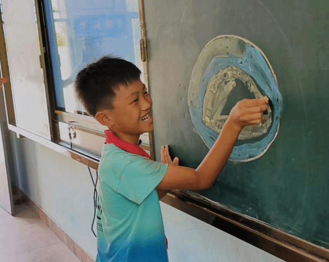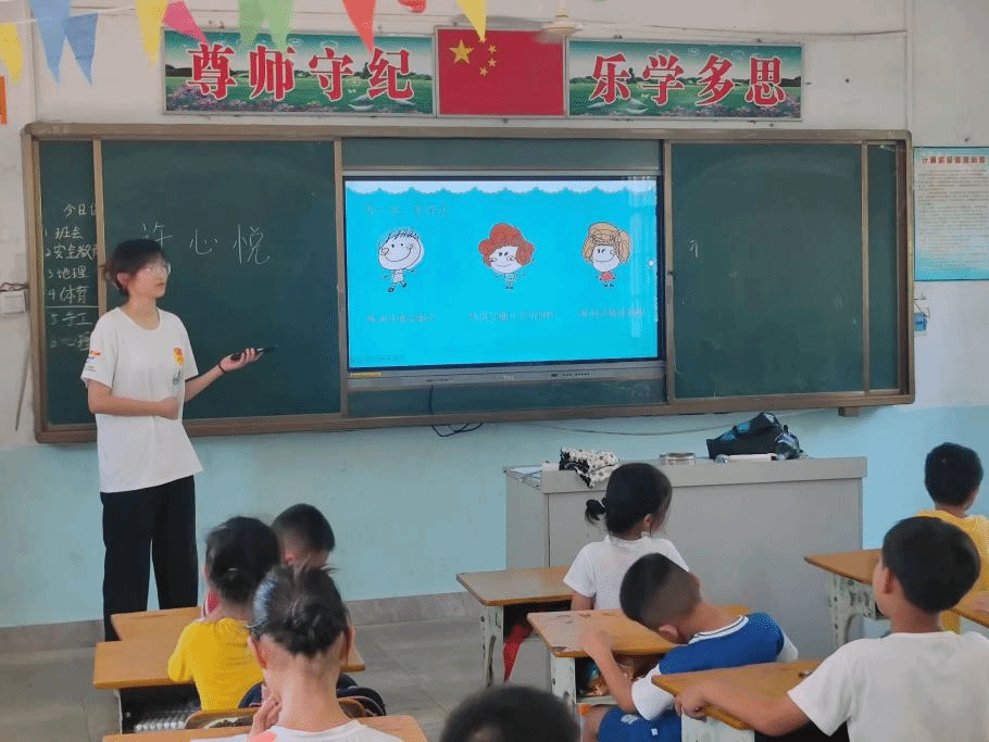 为了让学生们初步构建对世界认知的框架,地理基础知识的科普应当尽早进行。因此支教组成员曾嘉淇在地理课中穿插关于我国的地理知识,让学生可以认识到我国自然地貌的壮丽,提前让学生见识大自然的鬼斧神工。这些孩童们的想象,像是一张泛黄的老照片,勾起队员们对儿时的回忆。曾嘉淇还给同学们讲解了有关七大洲四大洋的位置、如何辨认相关国家的方向等知识,让同学们可以深刻认识我国的56个民族以及了解到黑种人、黄种人以及白种人的分布区域。